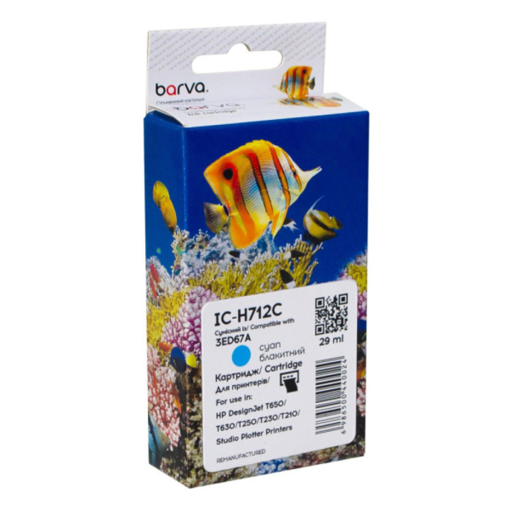 Картридж Barva HP 712 (3ED67A/3ED77A) 29 мл, Cyan (IC-H712C)
