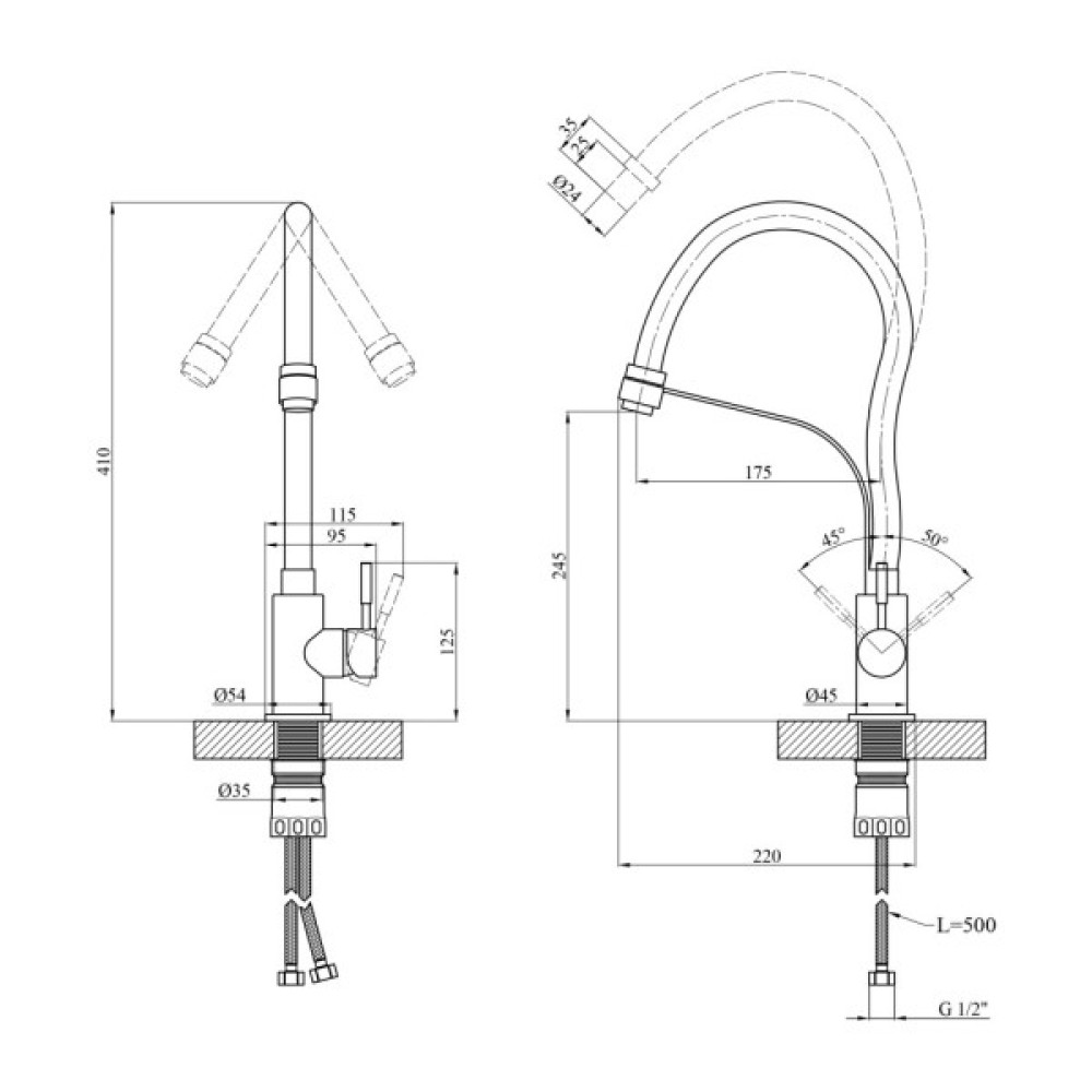 Додаткові характеристики аератор; гнучкий вилив; гнучка підводка; керамічний картридж 35 мм; витрата води до 13 л/хв