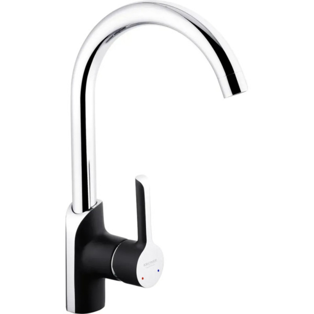 Змішувач для кухні Kroner KRP Essen - SCH030 - ідеальний вибір для вашої кухні. Виготовлений з високоякісної латуні, він гарантує міцність та довговічність. Має привабливу глянцево-матову поверхню хромовано-чорного кольору, що додає йому елегантності. Змішувач оснащений картриджним механізмом змішування, що дозволяє зручно регулювати температуру води. Його унікальна U-подібна форма виливу забезпечує зручність під час наповнення посуду або миття продуктів. Насолоджуйтесь функціональністю і стилем змішувача Kroner.