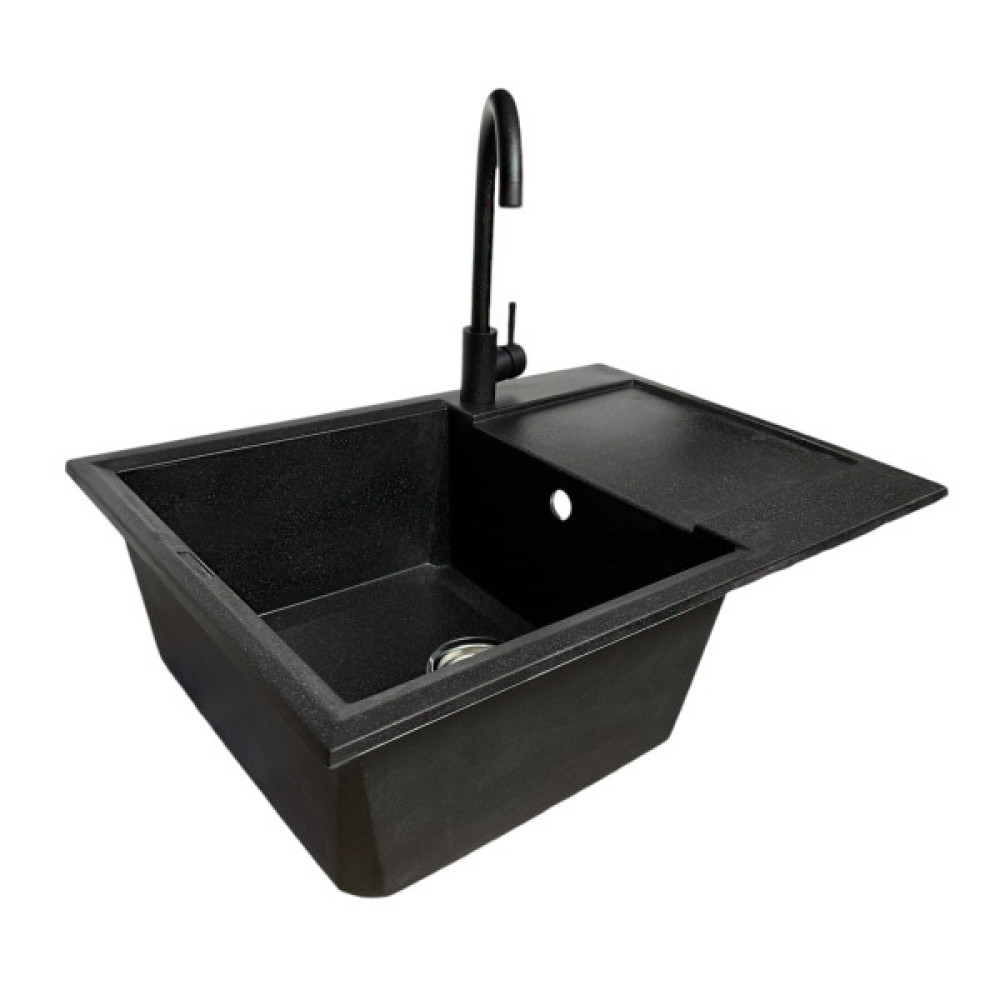 Набір кухонний Adamant Horizon Medium, штучний камінь, прямокут., з крилом, 700х500х230мм, чаша - 1, врізна, чорний + змішувач