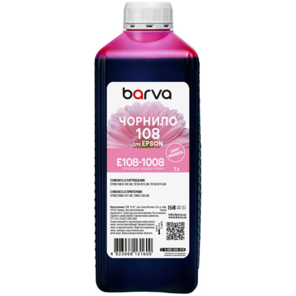 Теги: Чорнило, Barva, Epson, 108, 1, л, light, magenta, special, E1081008