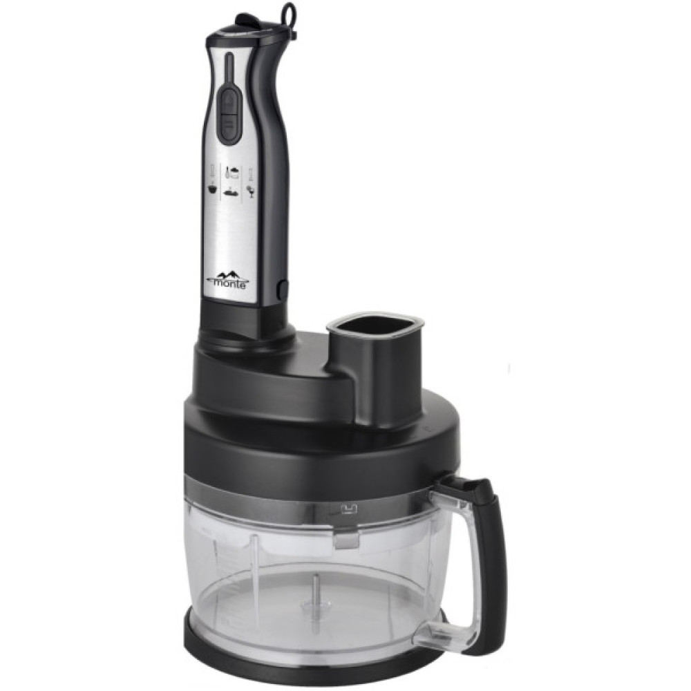 Блендер Monte MT-1910 — це справжня знахідка для тих, хто цінує якість і зручність у приготуванні їжі. Цей занурювальний блендер поєднує в собі сучасний дизайн з функціональністю, що робить його незамінним помічником на кухні. Виготовлений з поєднання пластика та нержавіючої сталі, він вишукано впишеться в будь-який інтер'єр завдяки своєму мінімалістичному стилю та стильному поєднанню чорного кольору з металевими деталями.