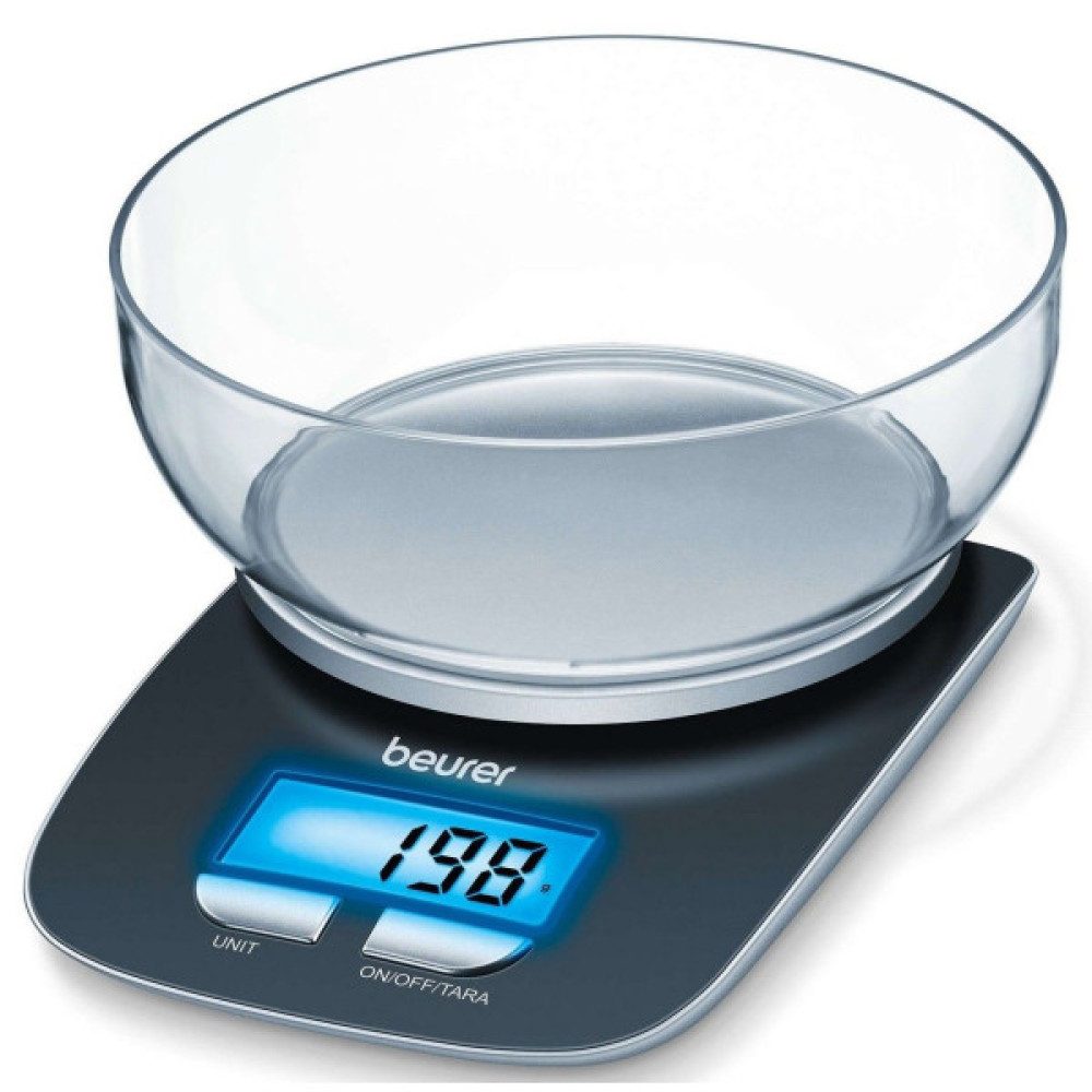 Теги: Ваги, Beurer, кухонні, з, чашею, 3кг, ємність, 12л, АААх2, комплекті, скло, чорний