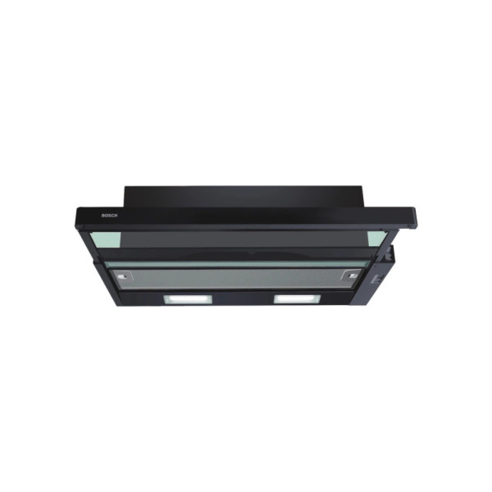 Телескопічна витяжка Bosch працює як у режимі відведення повітря, так і в режимі рециркуляції (за умови використання додаткових вугільних фільтрів). При цьому рівень шуму залишається комфортним — від 57 до 69 дБ.