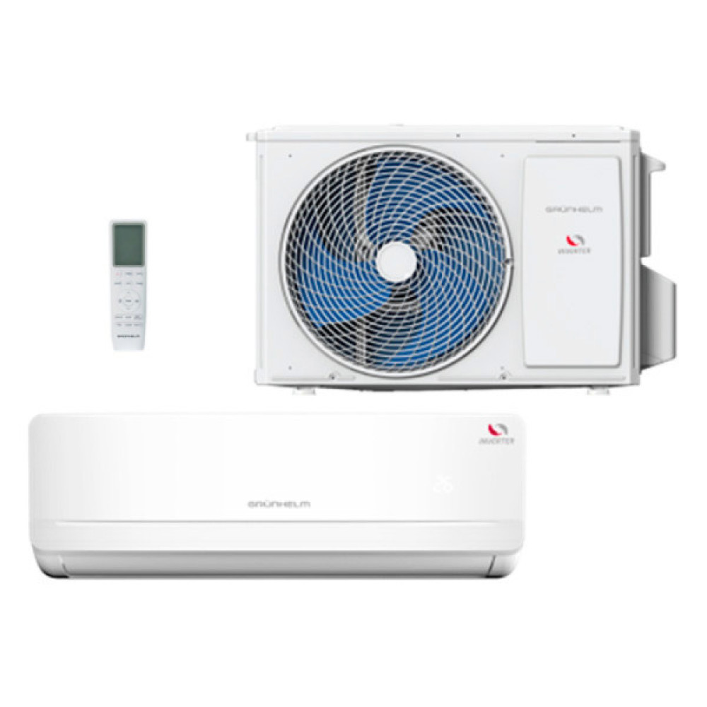 Настінний кондиціонер компанії Grunhelm - це потужний у своїй бюджетній категорії агрегат. Здійснює охолодження, обігрів, вентилятор, авто-осушення повітря. Хладогент R32 хімічна формула CH2F2. Низький рівень шуму. Економічний режим. Незалежне осушення. Таймер 24 години. Додатковий фільтр.