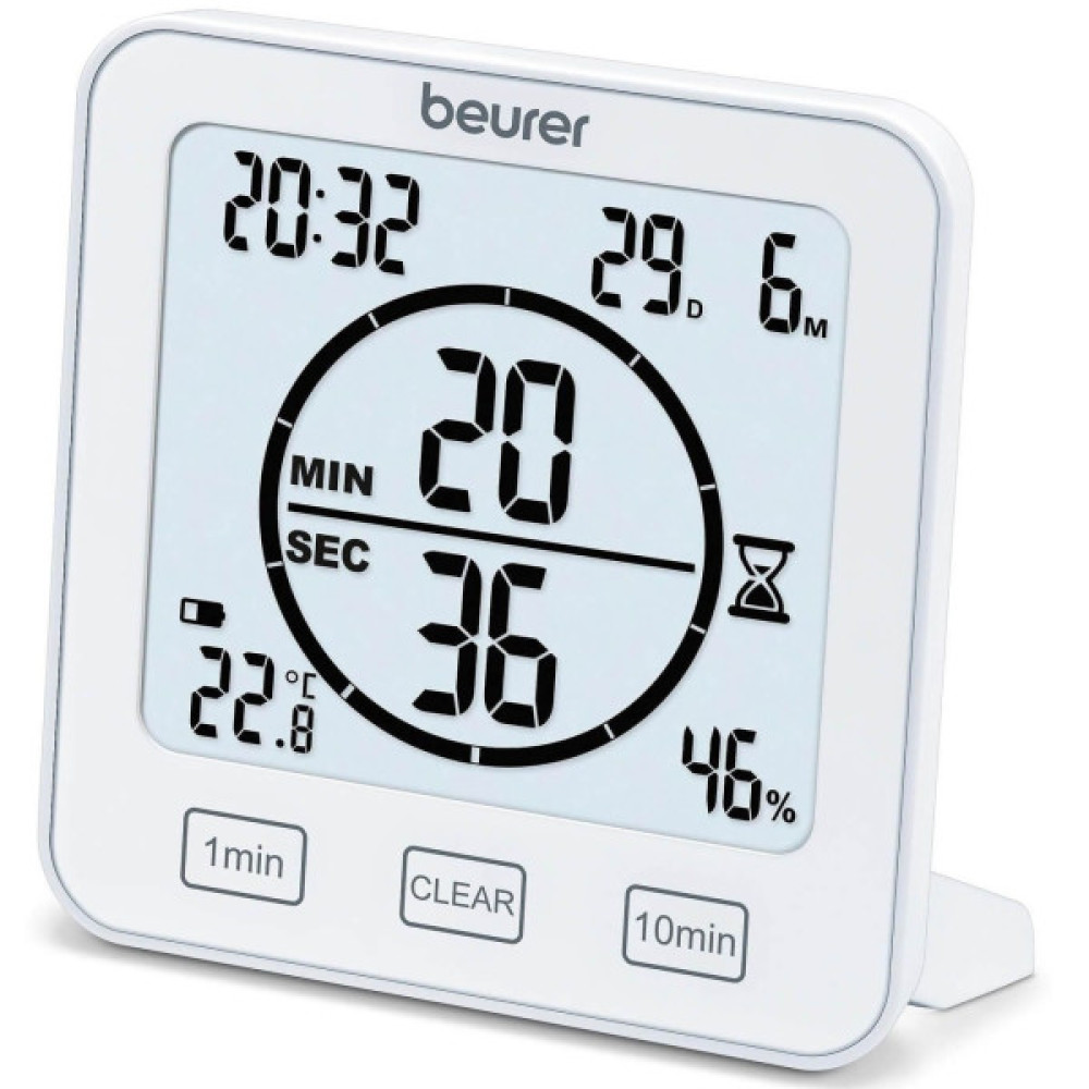 Термогігрометр Beurer, внутр. вимірювання, темп-ра, вологість, час, AAAx2, в комплекті, білий