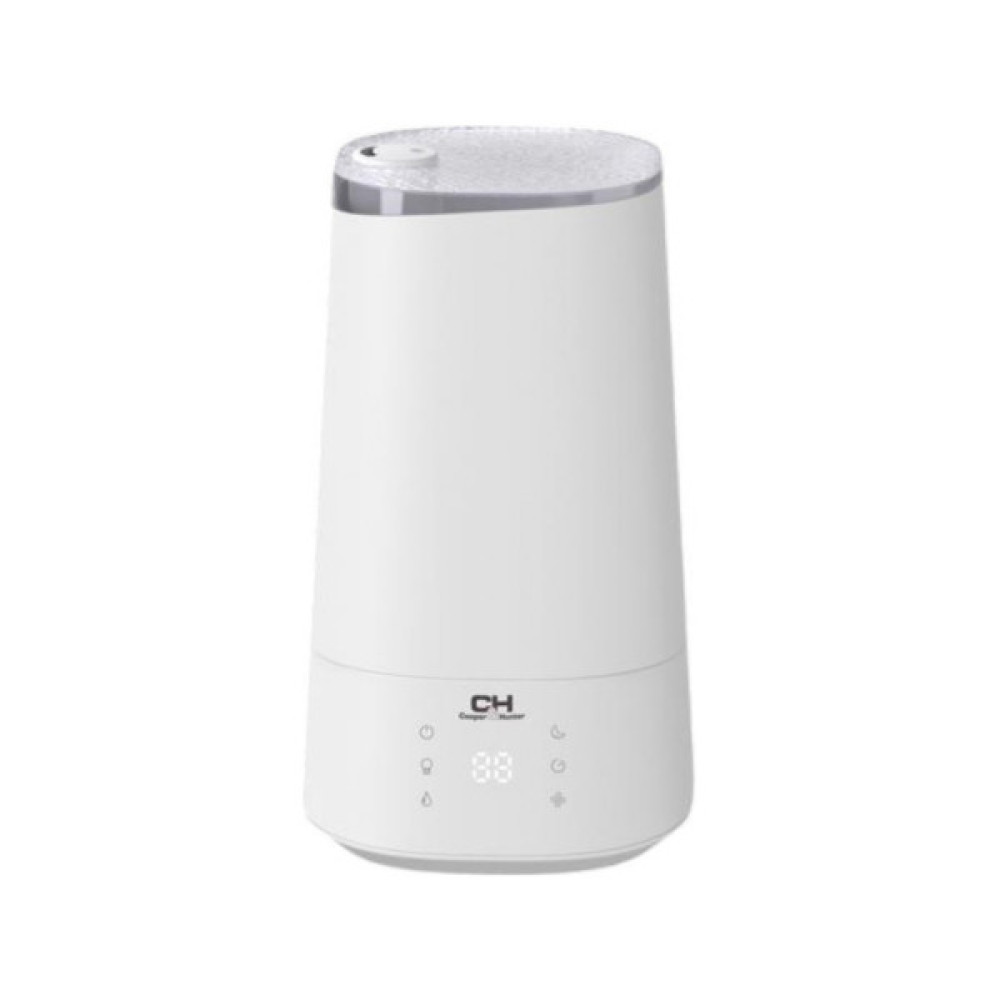 Зволожувач Cooper&Hunter CH-3040TU з ультразвуковим принципом роботи забезпечує продуктивність 300 мл/год і підходить для приміщень площею 35–45 м². Резервуар об'ємом 4 л з верхньою затокою води доповнений УФ-очищенням у піддоні та 7-кольоровим підсвічуванням. Сенсорне керування, інформативний дисплей з показниками вологості, температури та таймера, а також автоматичне вимкнення при низькому рівні води створюють зручні умови експлуатації. Аромакапсула дозволяє додавати ефірні олії для створення комфортної атмосфери.