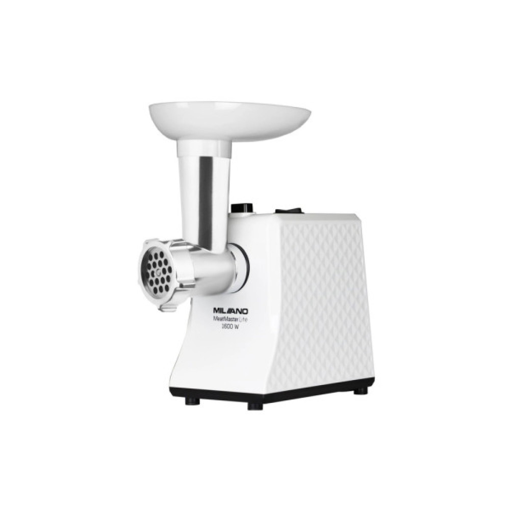 М'ясорубка Milano MG-4016WT MeatMaster Lite оснащена трьома насадками, серед яких соковижималка, насадка для кеббе та для ковбасних виробів. Також є дві решітки для різноманітного подрібнення. Додаткові можливості включають функцію реверсу, яка забезпечує зручний зворотний хід, і захист двигуна від перегріву, що підвищує безпеку експлуатації.