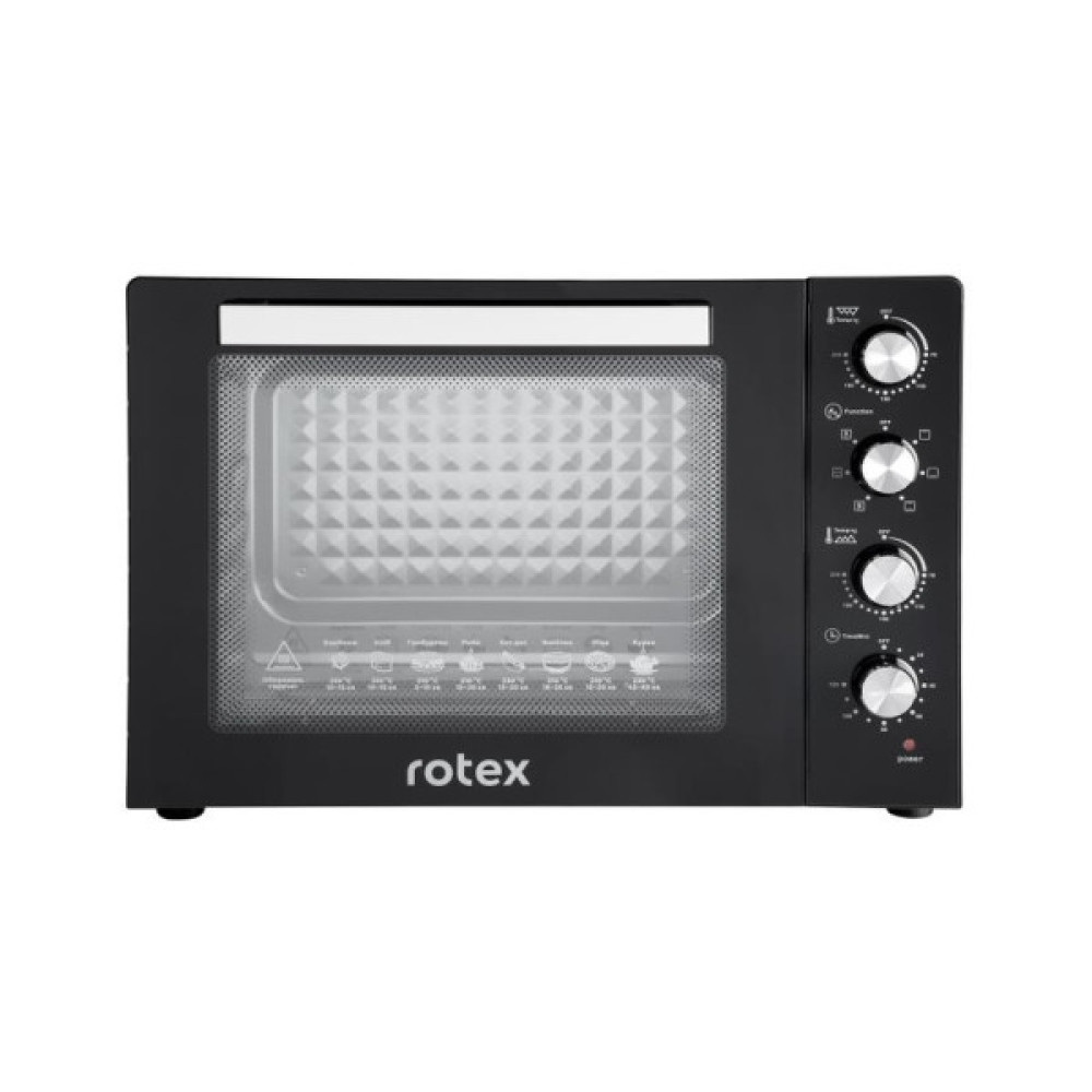 Ця духовка ідеальна, якщо у вас обмежений простір на кухні або немає вбудованої духової шафи. Добре підходить для випічки пирогів і хліба, запікання м’яса чи птиці, грилювання, приготування комплексних страв на будень або свята. Доступно 6 режимів роботи: верхній нагрів, нижній, верхній + нижній, поєднання з конвекцією і/або грилем + режим з вертелом для запікання. Конвекція + гриль — для рівномірного прогріву і скоринки. Вертел (rotisserie fork) — можливо засмажити м’ясо або птицю рівномірно зі всіх боків. Терморегулятор до 250 °C — дає змогу готувати різноманітні страви: від випічки до запікання.
