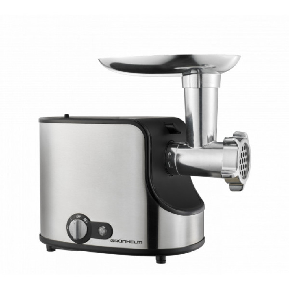 Електрична м'ясорубка Grunhelm оснащена функцією зворотного ходу (реверса), яка провертає шнек пристрою у зворотний бік і допомагає витягти застрягле м'ясо і намотані жили. Таким чином можна переробити навіть найжорсткіше м'ясо.