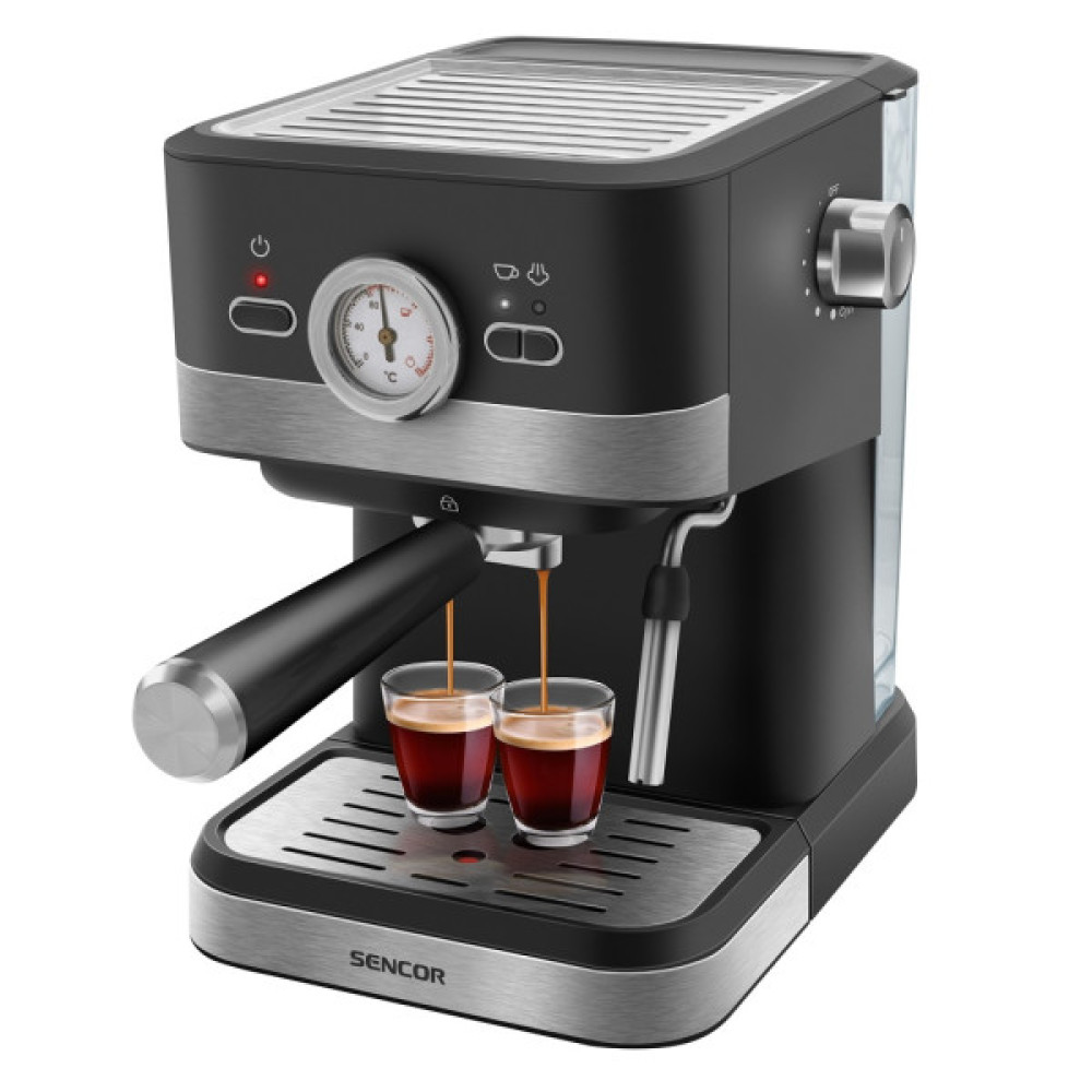 Основні переваги та функціональні можливостіSENCOR SES 1721BK обладнана піддоном для крапель, що забезпечує чистоту робочої поверхні. Об'єм резервуара для води становить 1,5 літра, що дозволяє приготувати до двох чашок кави одночасно, не потребуючи частого наповнення. Завдяки функції попереднього заварювання, аромат кави зберігається на високому рівні, що підкреслює його насиченість та глибину.