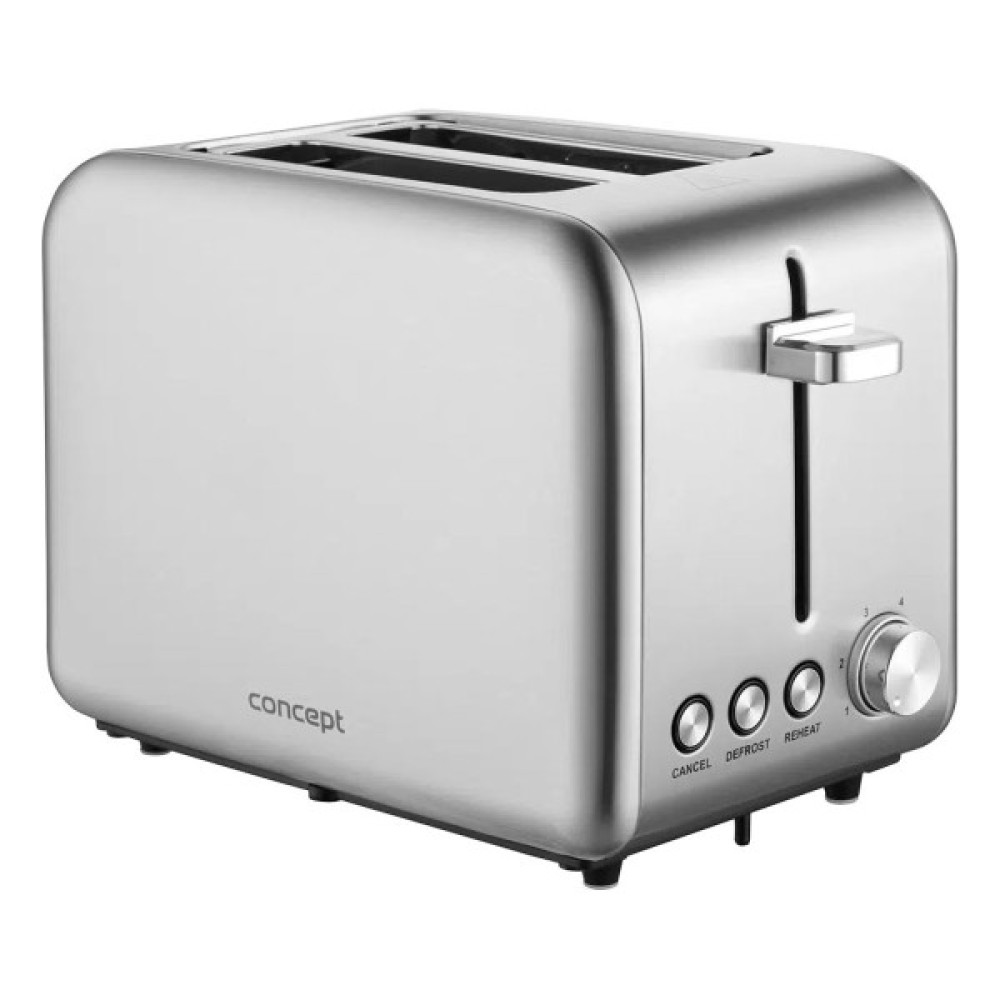 З тостером Concept TE2050 ви зможете швидко приготувати смачні домашні та хрусткі тости без використання олії. Він має два отвори для смаження та електронний таймер з 6 рівнями смаження. Оскільки тостер оснащений широкими отворами, ви зможете готувати тости будь-якої товщини. Також він має функції розморожування, підігріву та миттєвого припинення нагрівання. Після закінчення встановленого часу підсмажування готові скибочки автоматично вискакують і пристрій вимикається. Побалуйте себе хрусткими тостами, коли забажаєте.