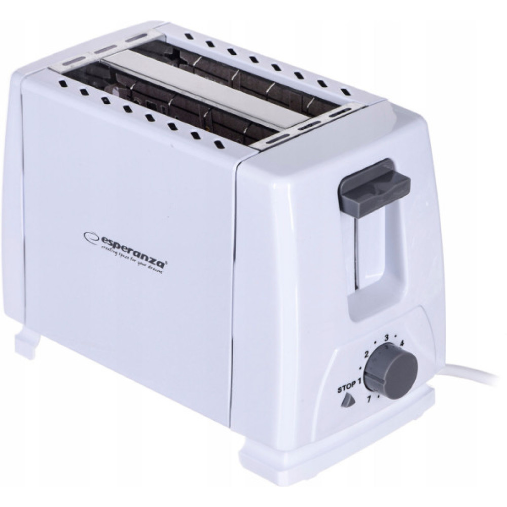 Тостер Esperanza Caprese EKT001 працює швидко та якісно, дозволяє встигнути зробити до сніданку ситні бутерброди. Виріб має два ідентичні відділення для хліба. Встановлюється на стіл за допомогою ніжок, що протиковзають, тому немає ризику скинути корпус на підлогу. Форма приладу проста квадратна.