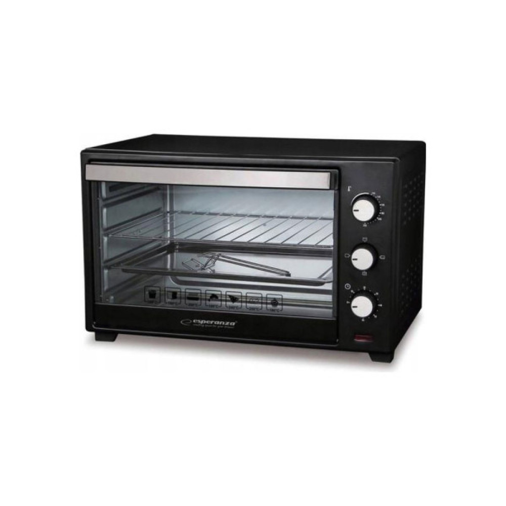 Електродуховка Esperanza EKO008 дуже вигідна, якщо ви багато подорожуєте, але любите смачну та свіжу домашню їжу. Таку піч можна придбати для роботи, якщо вам доводиться працювати без обідів, у ній можна приготувати безліч страв, смачних і корисних. Вдома вона виявиться незамінним помічником у приготуванні продуктів. У ній можна запікати, просмажувати, тушкувати та варити, якщо є потреба. Усе керування в ній механічне, загальний об'єм корисного простору — 20 літрів. Цього вистачить, щоб приготувати невелику страву або ж кілька порцій почергово.
