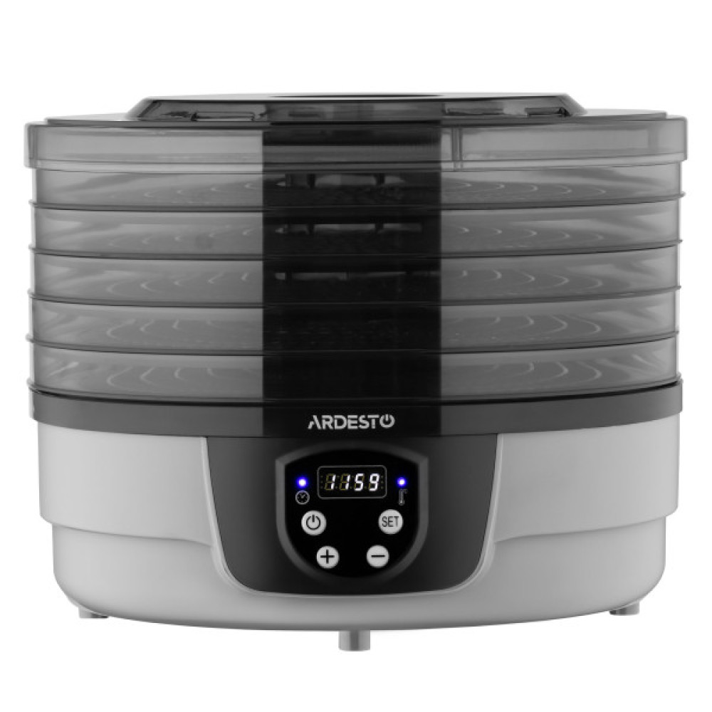 ARDESTO FDB-532TTC – це компактний і функціональний помічник, призначений для ефективного оброблення продуктів. Пристрій потужністю 250 Вт із механізмом обертання 5 піддонів діаметром 32 см забезпечує рівномірне та якісне сушіння. Завдяки широкому діапазону температури від 40 до 70 °C можна вибрати оптимальні налаштування для різних продуктів, а таймер до 48 год робить процес зручним і безпечним. Сушарку обладнано LED-дисплеєм і електронним керуванням, тож використання не становить труднощів. Прозора конструкція передбачає можливість контролювати процес сушіння, а захист від перегрівання гарантує безпеку. Модерновий дизайн білого кольору добре пасуватиме до сучасних кухонь.