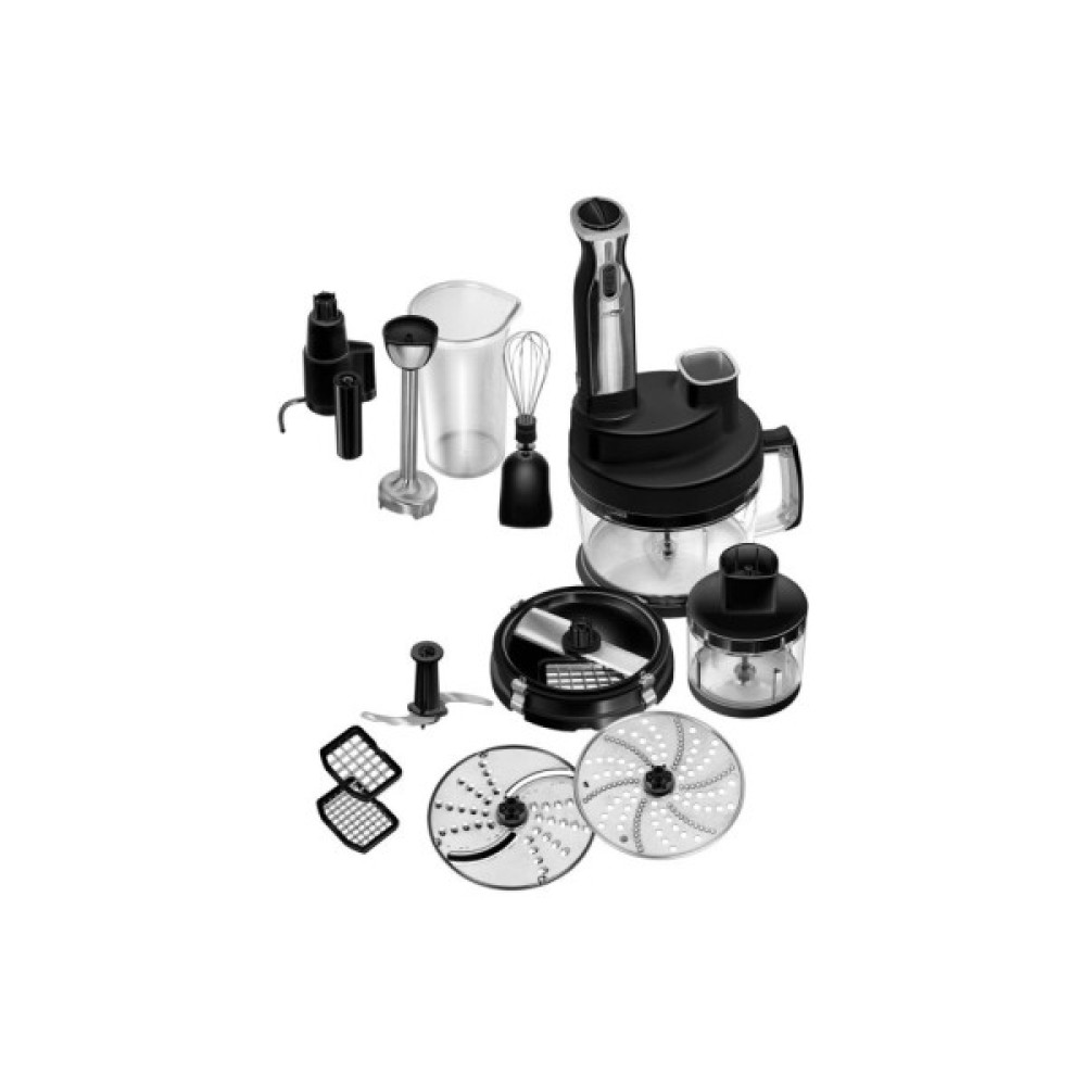 Особливої уваги заслуговує стильний чорний колір блендера, який гармонійно доповнить інтер'єр будь-якої кухні. Додаткові ємності, такі як чаша подрібнювача, млинок та чопер, надають універсальності та функціональності цьому приладу.