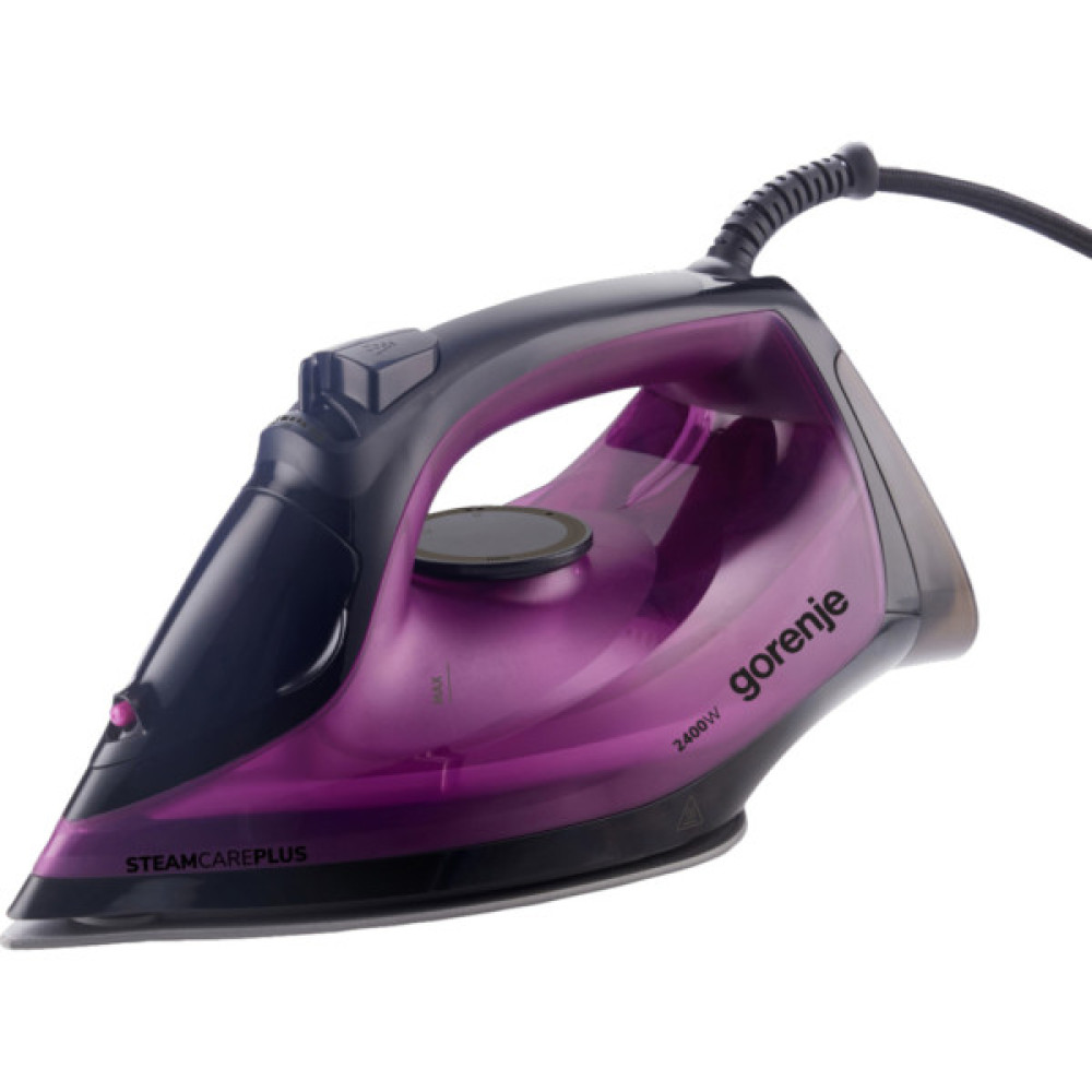 Праска Gorenje SIK2400BKV з керамічною підошвою, потужністю 2400 Вт, об'ємом резервуара 0,45 л, трьома рівнями потужності та функцією вертикальної пари. Має паровий удар до 180 г/хв, безперервну подачу пари до 40 г/хв, системи проти накипу та крапель, ECO-режим, автовідключення, поворотний шнур 360° та широкий отвір для доливання води.