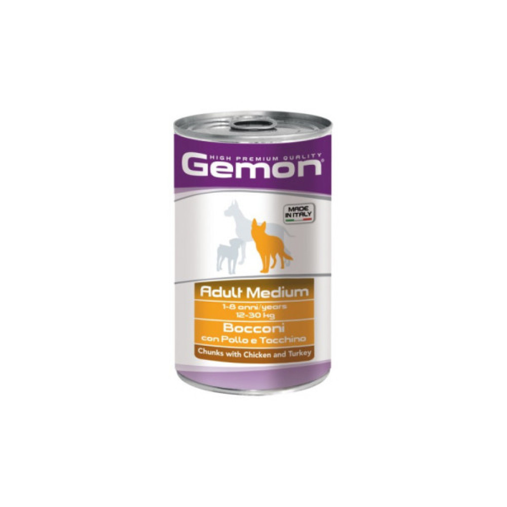 Повноцінний консервований корм для собак зі шматочками курки та індички. Спеціально розроблений для щоденного годування дорослих собак середніх порід (12-30 кг) з нормальною фізичною активністю віком 1-8 років.