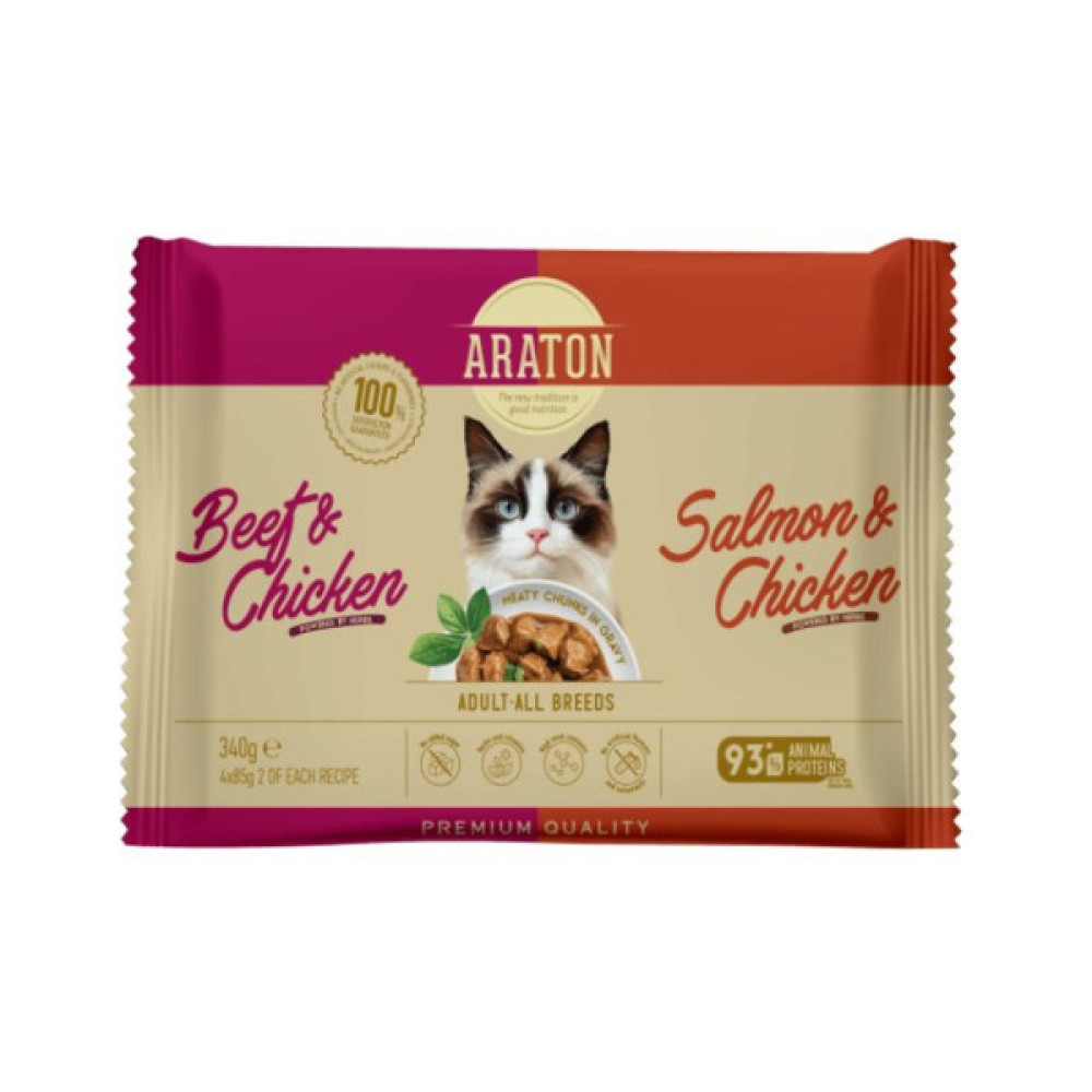 Вологий корм для кішок ARATON Set Adult (Лосось і курка, Яловичина і курка) 4x85 г (ART47929)