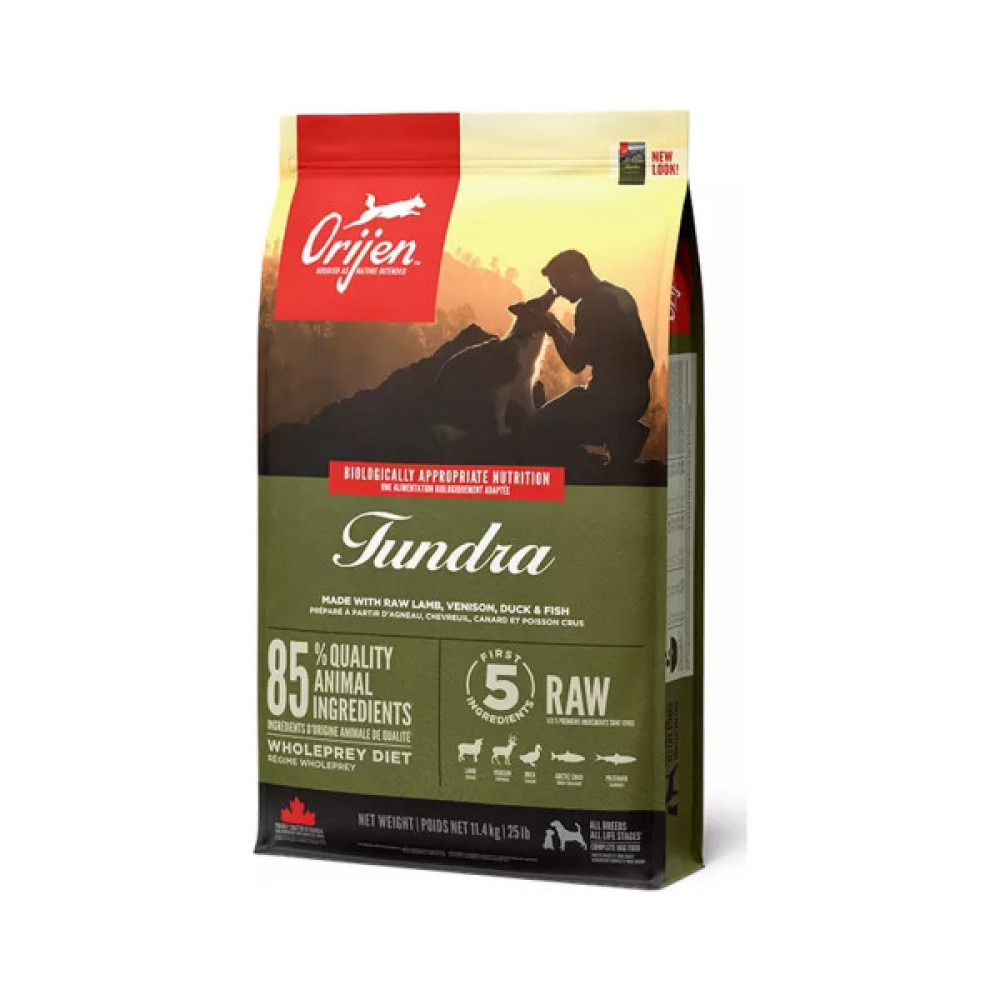 Orijen Tundra — це високоякісний корм для собак усіх порід та стадій життя, який забезпечує комплексне харчування завдяки високому вмісту білка та різноманіттю м’ясних інгредієнтів. Рецептура побудована на принципі біологічної відповідності, враховуючи природні потреби собак у поживних речовинах із м’яса та органів, з використанням технології WholePrey.