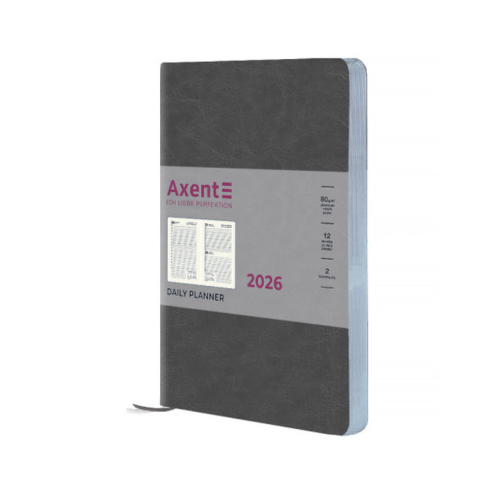 Зручний щоденник Axent із серії Partner City в м'якій обкладинці із срібним зрізом. Використовується для щоденних записів, а також ділових та творчих задач.