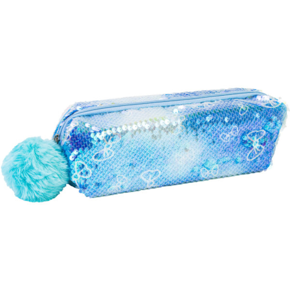 - Пенал із паєтками та помпоном на 1 відділення на блискавці