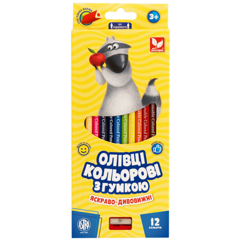 Олівці кольорові Школярик Тригранні з точилкою та гумкою 12 кольорів (312119001-UA)