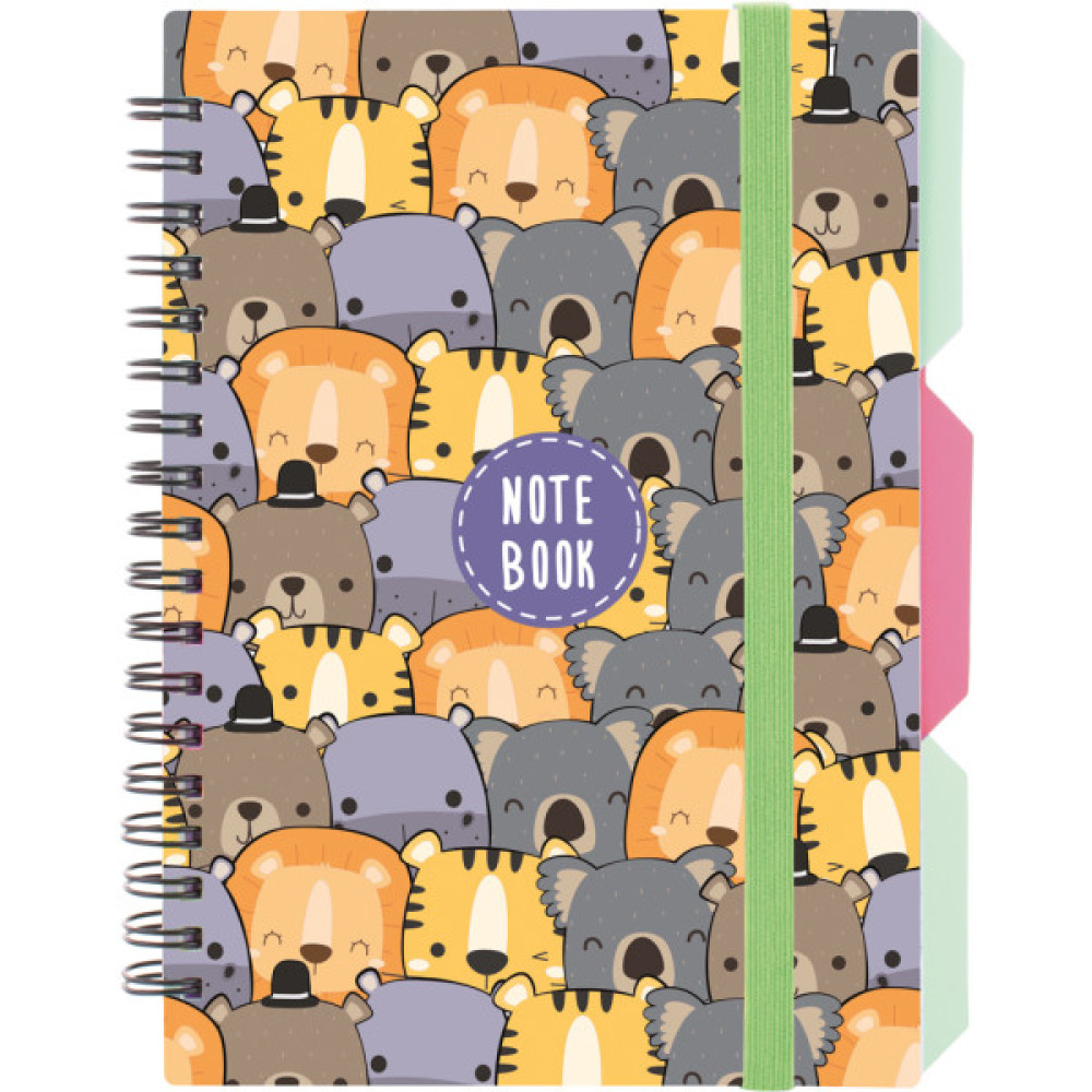 Блокнот формату B6 (122 x 177). Кріплення блока — спіраль. Обкладинка з гумкою, глянсовий пластик із повноколірним друком. Внутрішній блок — клітинка, щільність паперу — 65 г/м², кількість аркушів — 100. З переставними роздільниками блока.