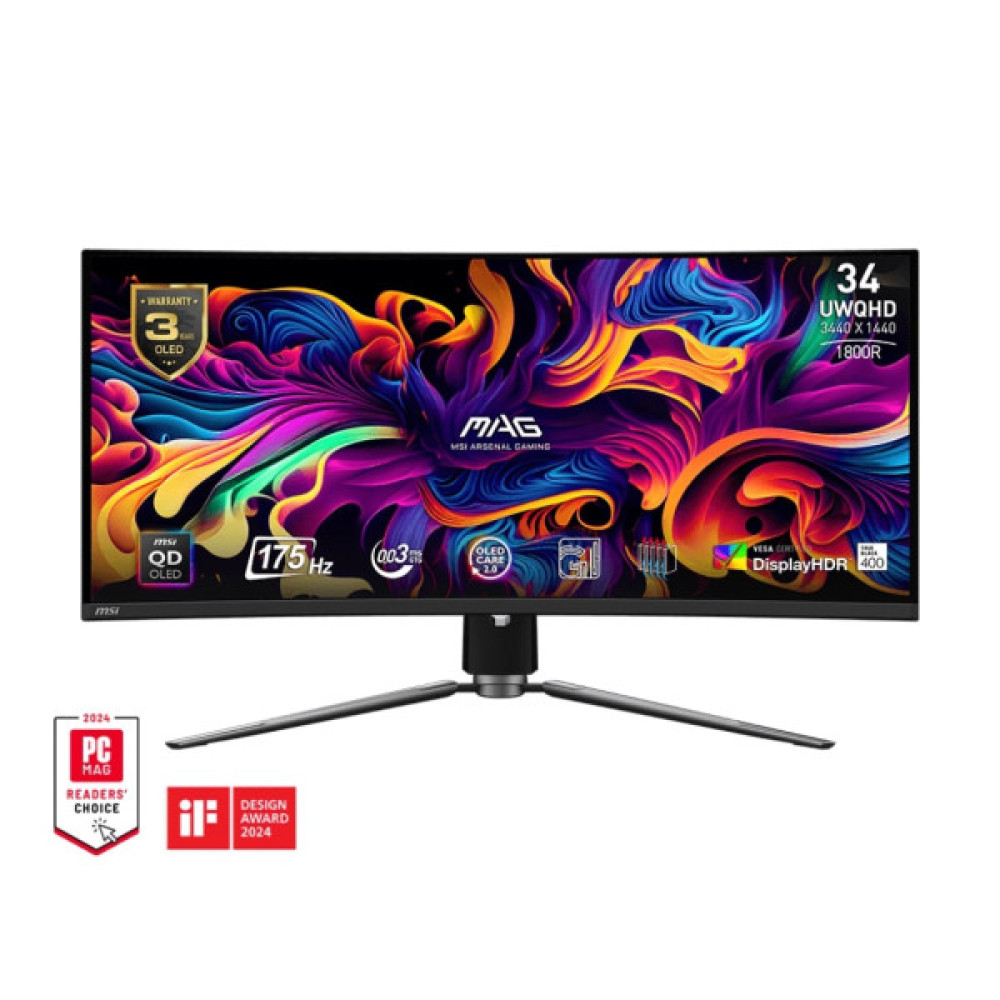 MSI MAG 341CQP QD-OLED — один із найкращих 34-дюймових ультрашироких моніторів 2025 року на QD-OLED-панелі нового покоління Samsung. Кривизна 1800R, роздільна здатність 3440×1440, частота 175 Гц і справжній відгук 0.03 мс (GtG) забезпечують ідеальну чіткість у динамічних сценах.