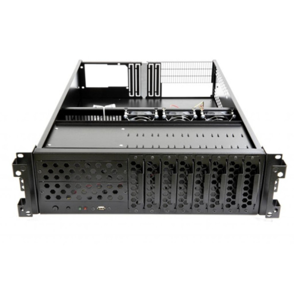 • Укомплектований 8 кошиками для легкого встановлення жорстких дисків формату 3,5". Дозволяє зняти жорсткий диск без розбирання сервера;