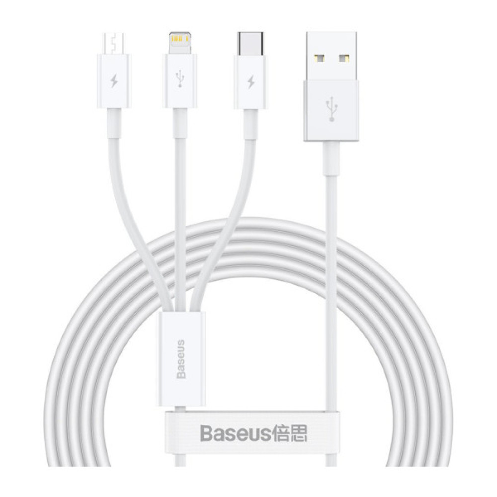 Кабель Baseus Superior Series Fast Charging 3-in-1 (Micro USB+Lightning+Type-C) 3.5 A (1.5 м) - універсальний кабель для заряджання гаджетів з роз'ємами Lightning, Micro та Type-C.