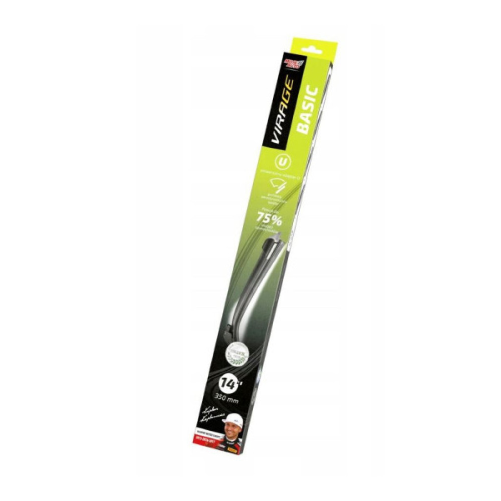 Безкаркасні щітки склоочисників MOJE AUTO Virage 92-013B 350мм – підійдуть для встановлення на легкових автомобілів, фургонів та вантажівок. Даний тип двірників підходить для використання, як влітку, так і взимку. Довжина двірника складає 350 мм. Для легкого встановлення передбачено U-подібний монтажний адаптер.Відсутність металевого каркаса запобігає налипанню мокрого снігу, обмерзанню і втраті рухливості в холодну пору року. Пружна пластина виготовлена зі сталі і повністю оцинкована, що забезпечує підвищений захист від корозії. Вона забезпечує рівномірний притиск до вітрового скла по всій довжині двірника, для ефективного розкиду крапель води. Зовнішня сторона корпусу має форму аеродинамічного спойлера, який забезпечує додатковий притиск до вітрового скла на великій швидкості за рахунок набігаючого потоку повітря. Всі металеві елементи конструкції двірника мають в своєму складі підвищений вміст карбону, для стійкості корозійних процесів. Лезо склоочисника MOJE AUTO виготовлено за сучасною технологією, натуральна гума покрита шаром силікону. Це забезпечує плавне й тихе ковзання по поверхні вітрового скла без прослизань. Гумка двірника стійка до агресивних хімічних компонентів омивача скла, а також до тривалого впливу прямих сонячних променів.